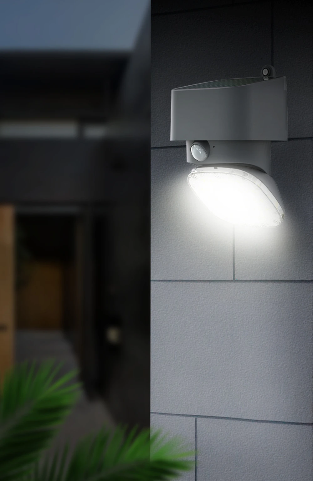 Applique solaire murale blanche/3000°k/faisceau 120°/détecteur de mouvements/3 modes/panneau solaire 1w/batterie lifepo4 -14,8wh/3,7v/ip65/ik10/orientable 180°/thermoplastique-abs