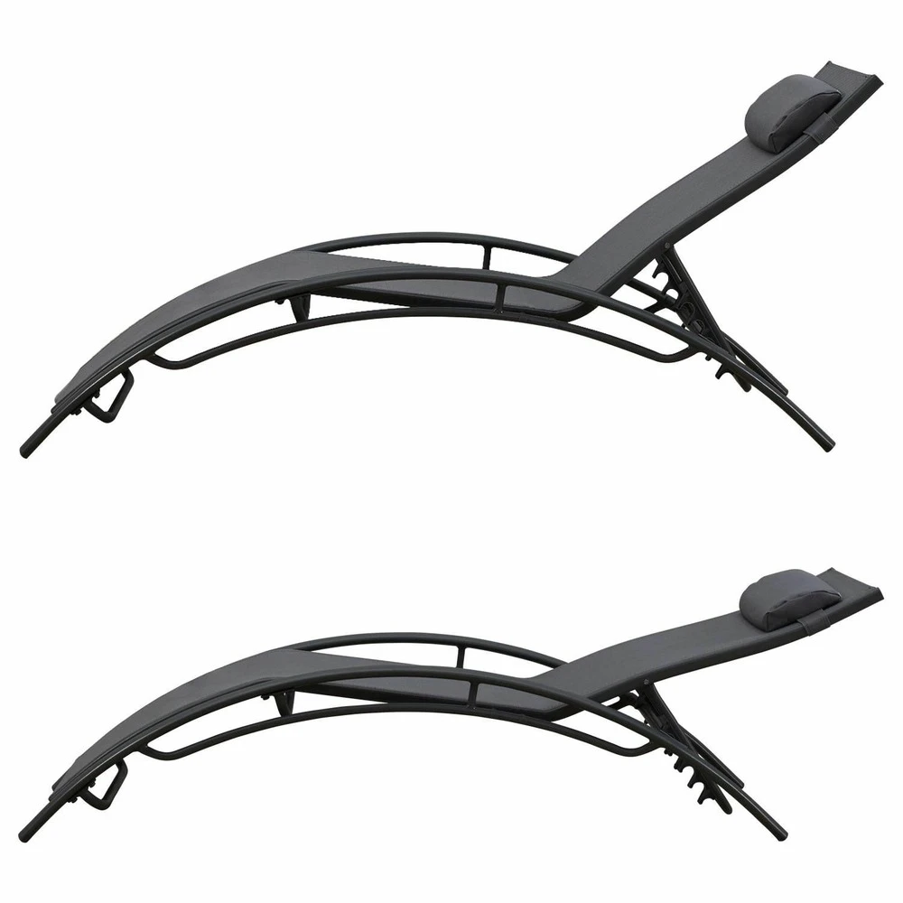 sa structure courbée associée au revêtement en textilène épouse la forme du corps pour une assise encore plus confortable. Finalisez l’ajustement de votre position grâce au coussin de tête.
