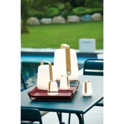 Lampe De Table Chloe 35 Trépied En Bois Batterie Rechargeable Led Rgb Avec Télécommande Hauteur 36cm