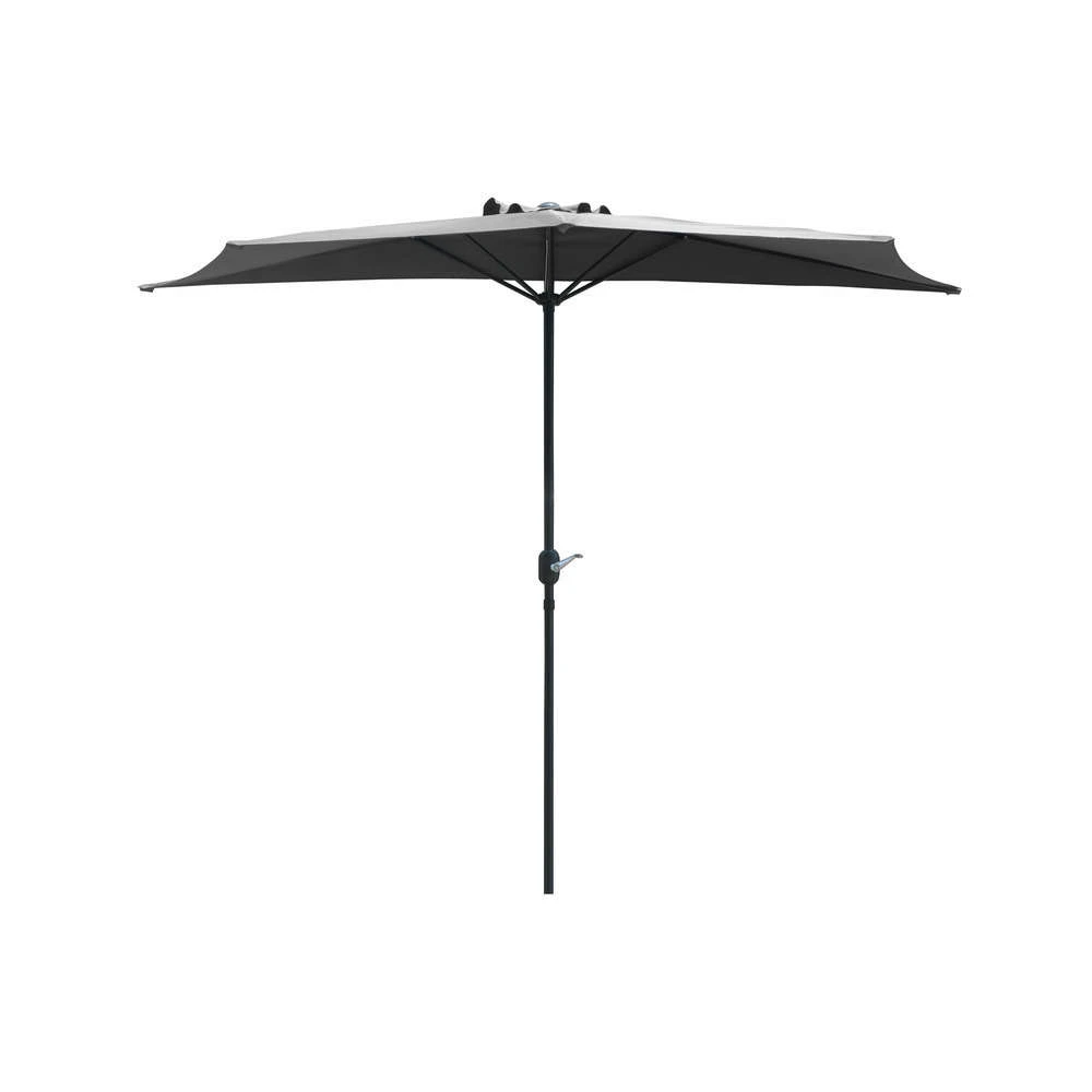 Ce demi parasol a un mât en aluminium et une toile déperlante avec 5 baleines. Il sera le compagnon idéal lors de vos séances farniente ou de vos repas en extérieur. Ce demi parasol apportera une touche de fraicheur et de modernisme au décor de votre jardin ou terrasse et vous serez protéger grâce à son indice de protection UPF 15-24.