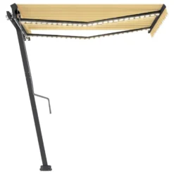 VIDAXL Auvent Automatique Capteur De Vent/led 350x250cm Jaune Et Blanc