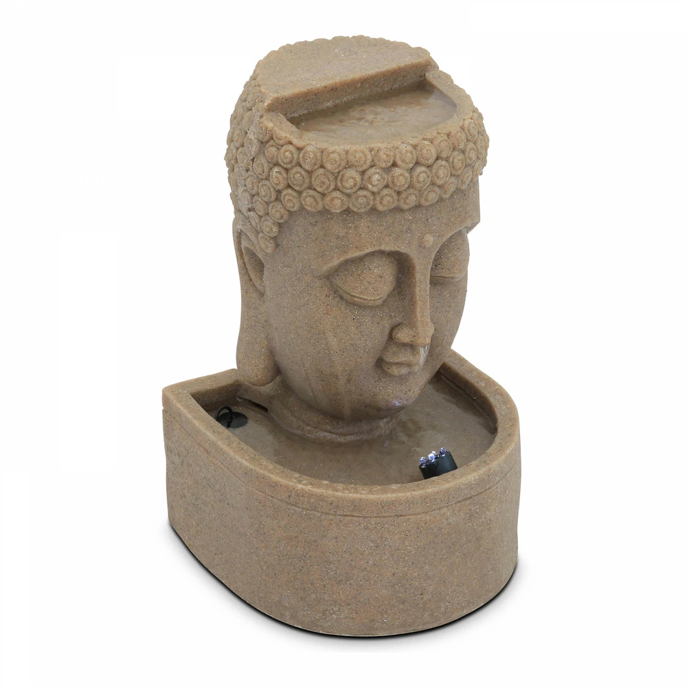 Fontaine Tête De Bouddha En Pierre Reconstituée Avec Led