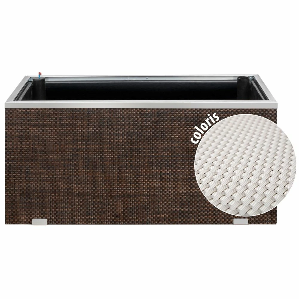 jardinière en résine tressée avec réserve d’eau et cadre en aluminium 95 x 39 x 43 cm