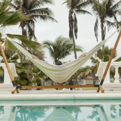 Toile De Hamac Rayée – Citron Vert / Gris Clair / écru. 1 Personne. 100% Polycoton. 240x160cm