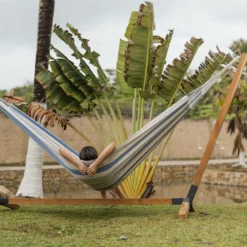 Toile De Hamac Rayée – Bleu Turquoise / Gris Clair / écru. 1 Personne. 100% Polycoton. 240x160cm