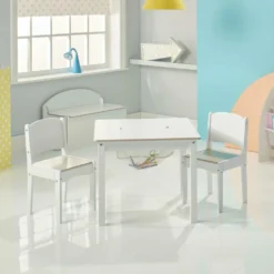VIDAXL Ensemble De Table Et Chaises Enfants 3 Pcs Blanc Et Gris Mdf