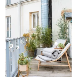 Chaise Lounge AGAPE En Aluminium Et Tissu Beige – 108,5×66,5×81,5 Cm