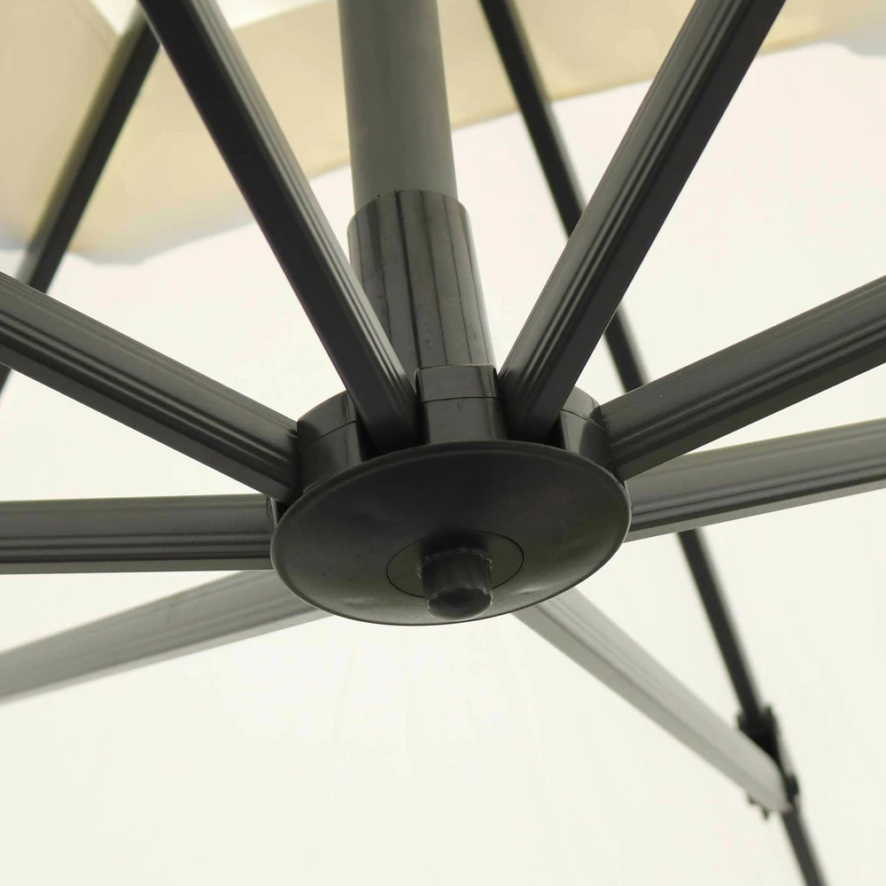 parasol déporté carré esthétique 3 x 3 m, et 2,5 m de hauteur, procure une large surface de 9 m² d’ombrage, idéal pour terrasse et jardin. Ce parasol excentré est très solide grâce à son mât principal de 77 mm x 53 mm de diamètre et son mât déporté 26 mm x 45 mm maintenu par 8 baleines. Ce parasol de jardin est très résistant grâce à sa structure 100 % en aluminium et sa toile 100 % polyester 250 g/m². Cette toile de parasol dispose d’un traitement anti uv, est déperlante et teintée dans la masse pour éviter toute décoloration… inclus un lot de 4 dalles à lester.