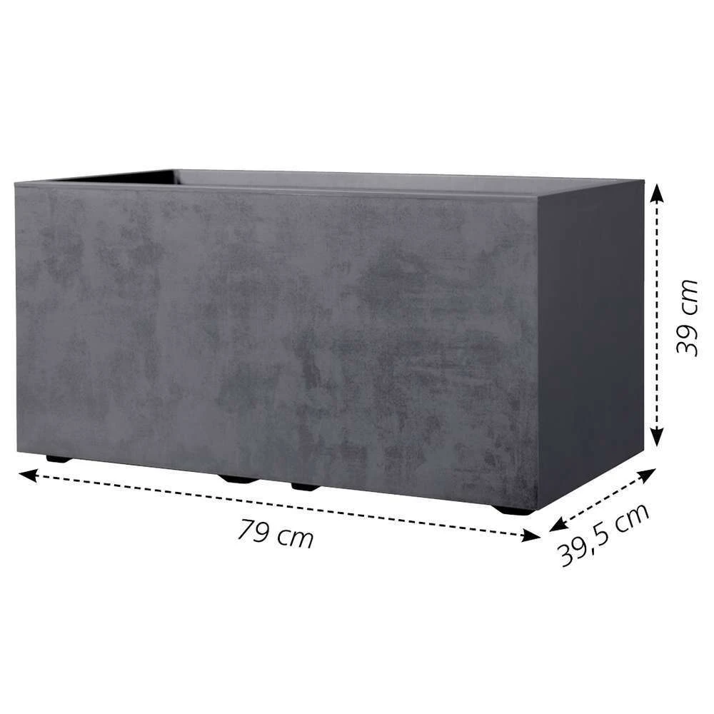 Pour planter des massifs artificiels, créer des cloisons naturelles et agrémenter votre terrasse en ville, choisissez le pot rectangulaire Millenium anthracite. Format 79×39, 5x39cm, son apparence béton ciré en fait un élément de décoration pour une terrasse de style contemporain. Les lignes et angles droits du pot rectangulaire Millenium anthracite permettent de les aligner. Équipé d’un bouchon amovible et de 8 pieds courts, le pot rectangulaire Millenium anthracite est isolé du sol. Il est résistant au gel et aux U.V.